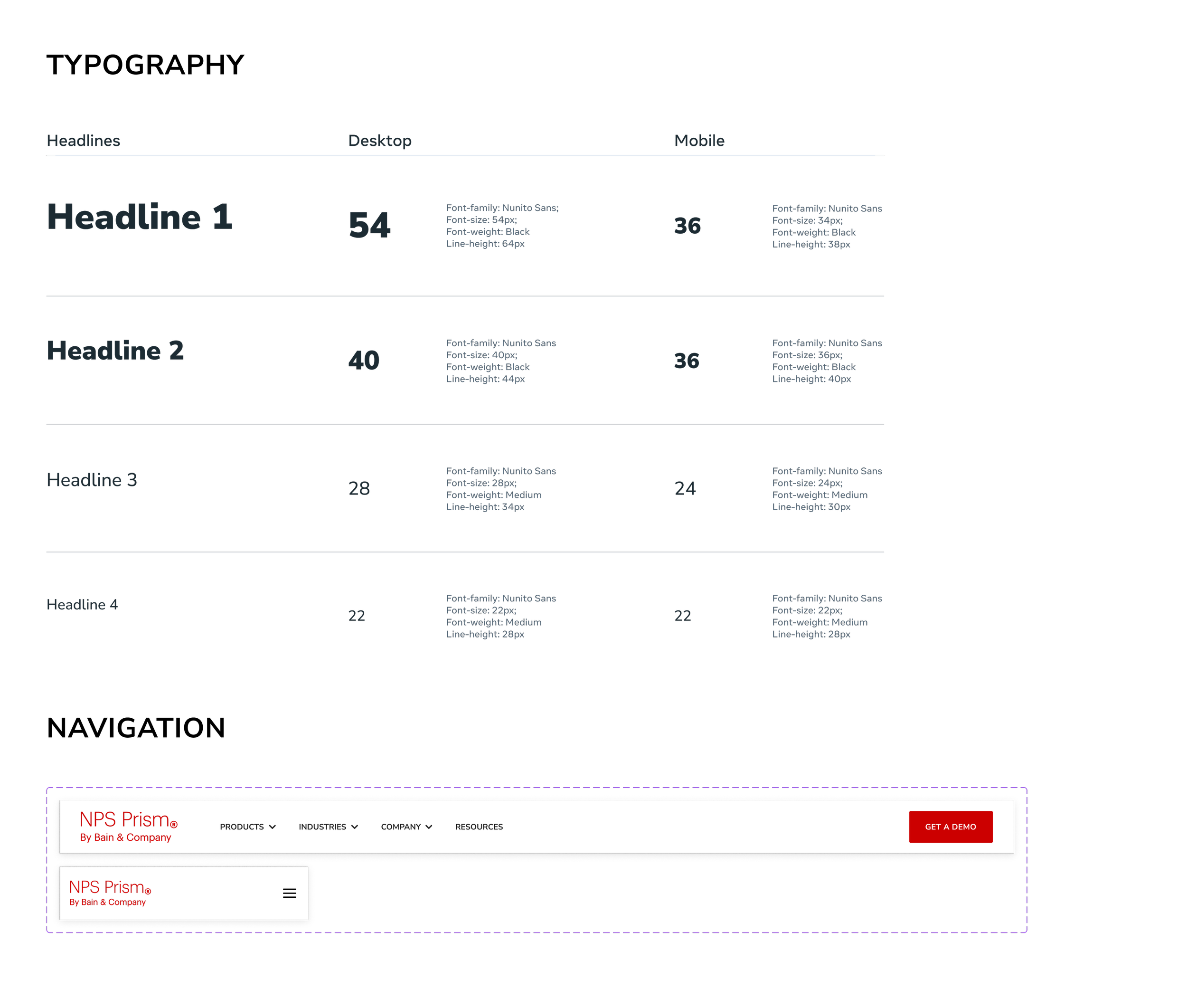 I adapted Bain’s typography, color, and basic UI standards but created new components where NPS Prism needed its own voice, like industry tiles, stat banners, and storytelling modules.