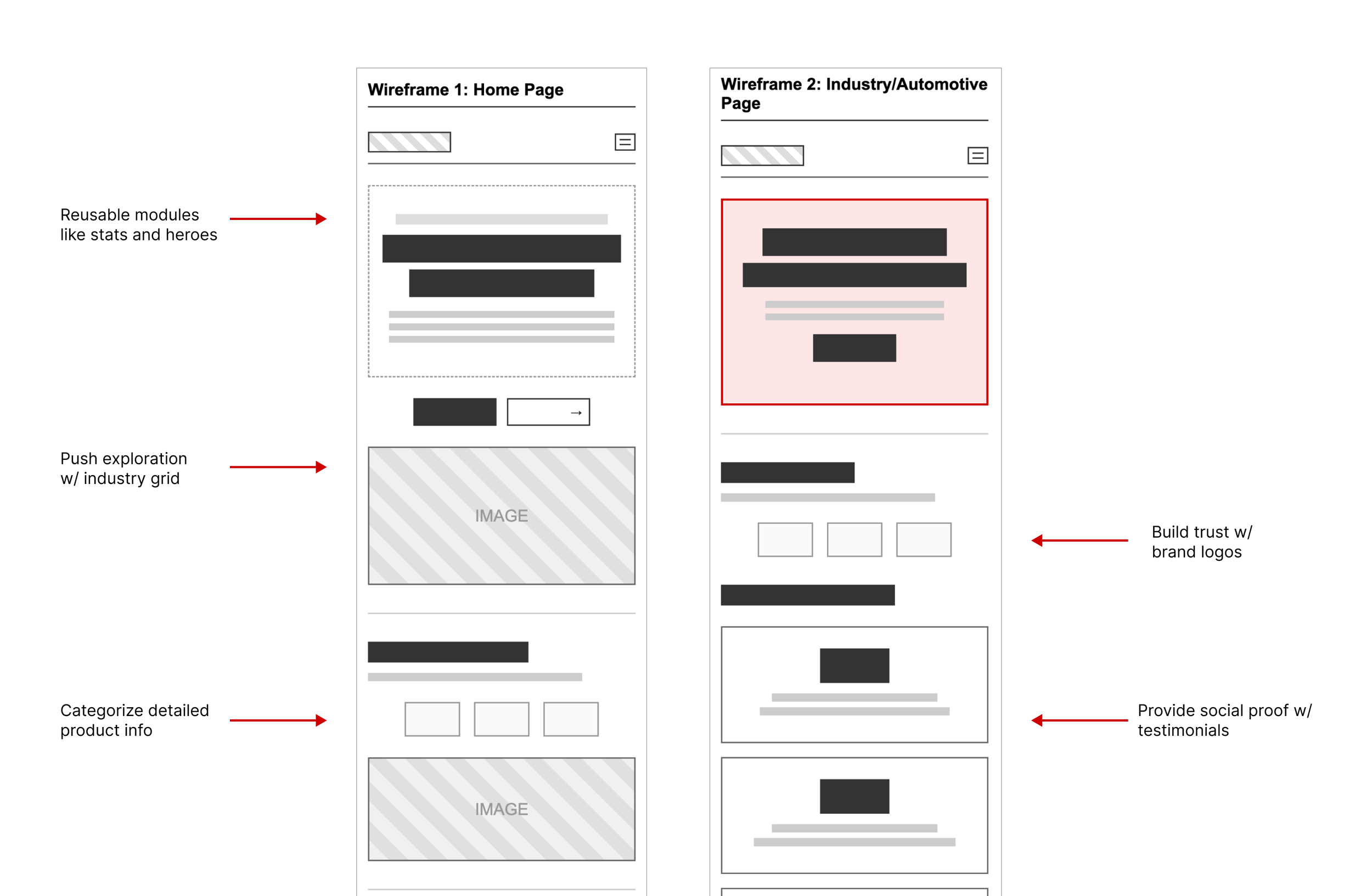 Hero blocks were reused across homepage, industry pages, and product sections.